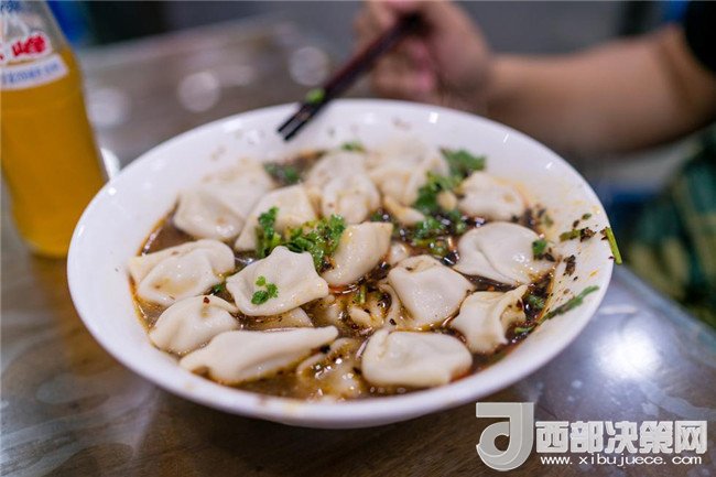 馬二酸湯水餃:特有的香料味兒,混合著有湯汁兒的牛肉餡,美美的。再喝口熱湯,香菜、辣椒、芝麻配起來(lái)特別的提味。味道重,口味酸,適合老陜。