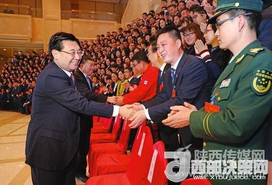 十二月十七日,共青團(tuán)陜西省第十三次代表大會在西安開幕。圖為省委書記、省長胡和平親切接見參會代表。陜西日報記者 宋紅梅攝