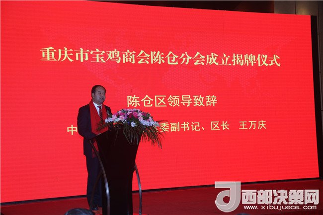 當(dāng)天下午,寶雞市陳倉(cāng)區(qū)在重慶市隆重舉行了重慶市寶雞商會(huì)陳倉(cāng)分會(huì)成立大會(huì),寶雞市政協(xié)副主席、市工商聯(lián)主席、市總商會(huì)會(huì)長(zhǎng)和惠敏、重慶市工商業(yè)聯(lián)合會(huì)外聯(lián)部部長(zhǎng)劉曉斌、重慶市寶雞商會(huì)會(huì)長(zhǎng)符林虎、廣東省寶雞商會(huì)會(huì)長(zhǎng)李偉以及陳倉(cāng)區(qū)委、區(qū)人大、區(qū)政府、區(qū)政協(xié)主要領(lǐng)導(dǎo)和重慶市在智能制造、電子電器、商貿(mào)物流、工程建筑等領(lǐng)域有影響力的企業(yè)家、陳倉(cāng)籍在渝創(chuàng)業(yè)發(fā)展的企業(yè)家等190余人出席大會(huì)。