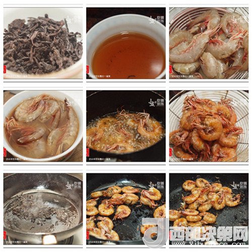 準(zhǔn)備好烏龍茶;加入開水沖泡,第一泡茶水倒掉,其他的茶水沖在碗里,茶葉瀝干水分待用;海蝦去除蝦頭,蝦背剪開;將蝦放入茶水中,浸泡1個小時,撈出瀝干水分;熱油,下蝦,用中火炸至蝦金黃;取出,再快速復(fù)炸一遍,瀝干油;取一平底鍋,下1湯匙左右的油,溫度足夠時,下茶葉,用中小火炒出茶葉的香味;下蝦,繼續(xù)用中小火炒均勻,炒至蝦變熱;加入椒鹽粉調(diào)味,即可熄火。