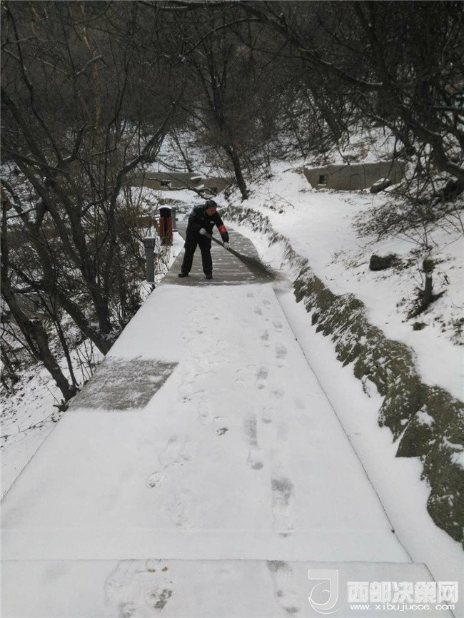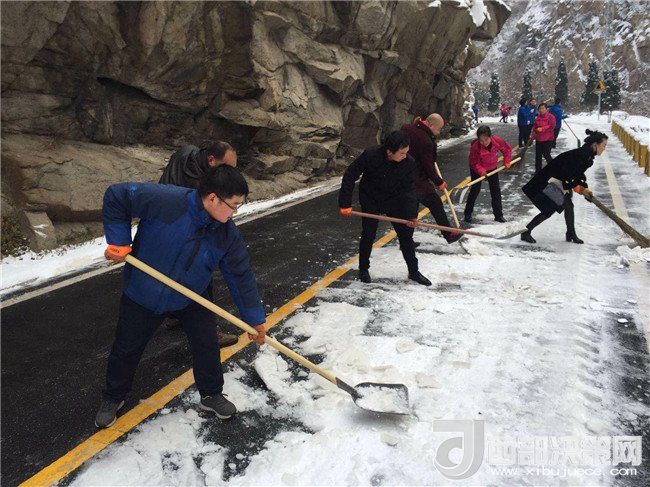 但積雪成冰的路面卻為游客出行造成了極大的不便,華旅集團(tuán)在第一時(shí)間組織全體員工開展了大范圍的掃雪除冰行動(dòng)。