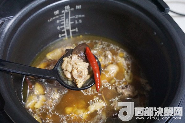 7、短短的20分鐘時(shí)間,噴香的香菇燉雞就做好了,而且這款鮮呼吸電壓力鍋,自動(dòng)排壓,如果你中間補(bǔ)充食材或調(diào)味料,還有貼心設(shè)計(jì)的中途加菜,保證不同食材的最佳口感。