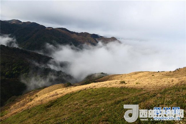 這是1月7日在貴州省黔東南苗嶺國家地質(zhì)公園拍攝的云海景觀。寒冬時(shí)節(jié),位于貴州省黔東南州的苗嶺國家地質(zhì)公園出現(xiàn)云海霧凇景觀,原始森林和草場在云海中若隱若現(xiàn),美若畫卷。(楊文斌攝)