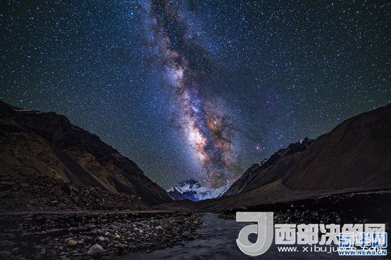 這是“2017喜馬拉雅星空攝影展”十佳西藏星空照片——《珠峰星河》。新華社發(fā)(李定謀 攝)