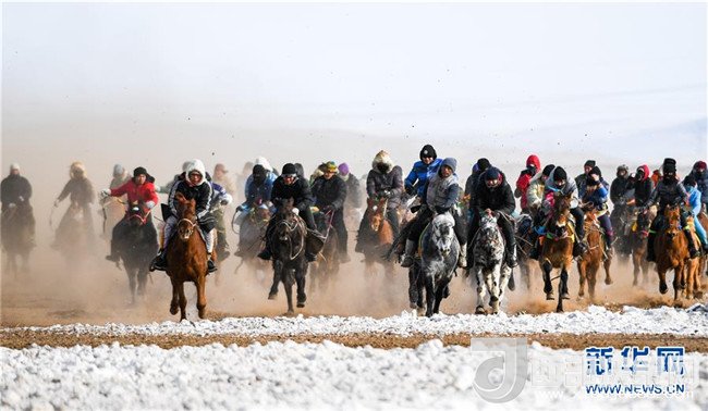 1月16日,在內蒙古錫林浩特鳳凰馬場,牧民們進行速度賽馬。