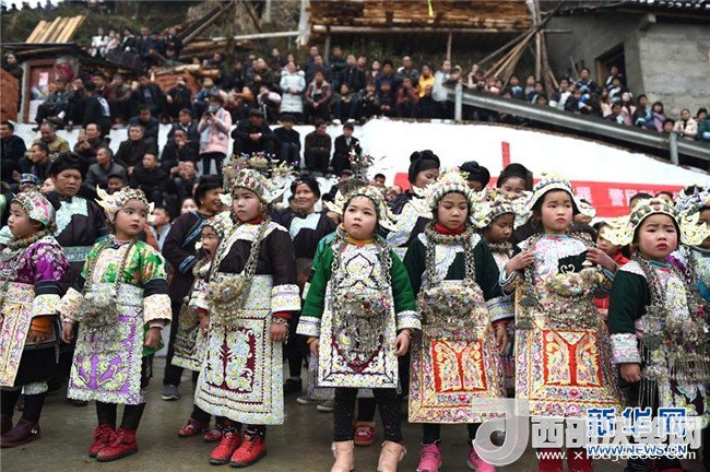 當(dāng)日是貴州省榕江縣仁里鄉(xiāng)仁吉侗寨大年初二,附近5個(gè)村寨的侗族、苗族、水族等少數(shù)民族群眾前來“吃相思”,共同歡慶侗年。“吃相思”是侗族地區(qū)村與村、寨與寨之間舉行的一種民間交往活動。記者戴天放攝