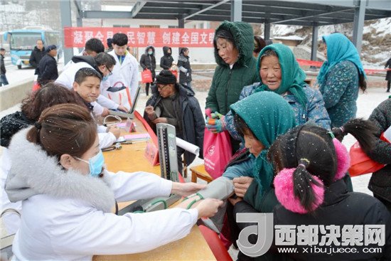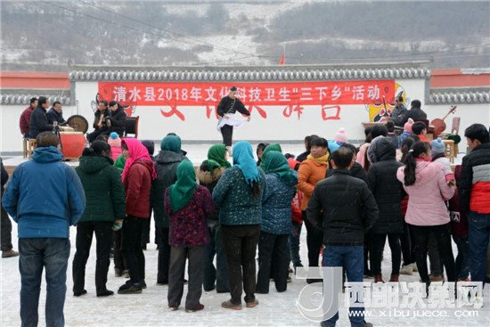 西部決策網(wǎng)-西部大開(kāi)發(fā)訊(帥華鋒 通訊員 馬存福 楊兆康)大雪紛飛雪飄揚(yáng),過(guò)了臘八就是年。1月24日,由清水縣委宣傳部、文明辦、文廣局、縣委黨校、文化館、農(nóng)業(yè)局、縣醫(yī)院、中醫(yī)院、婦保站、文聯(lián)等單位組織開(kāi)展的2018年文化科技衛(wèi)生“三下鄉(xiāng)”活動(dòng)走進(jìn)秦亭鎮(zhèn)全莊村。