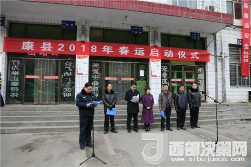 西部決策網(wǎng)-西部大開發(fā)訊(帥華鋒 通訊員 馬存福 牛田園)2018年2月1日上午,甘肅康縣運(yùn)管局聯(lián)合交通、運(yùn)管、交警、路政、農(nóng)機(jī)等部門,在康縣汽車站舉行了康縣2018年“春運(yùn)”啟動儀式,正式拉開了為期40天的春運(yùn)工作序幕。縣委副書記邱曉旭、縣委常委、政法委書記蒙艷琴、公安局政委帥富奎出席儀式并講話,運(yùn)管局全體運(yùn)政人員、交警大隊全體民警、客運(yùn)企業(yè)管理人員及駕駛員等200余人參加了啟動儀式。