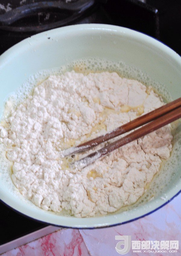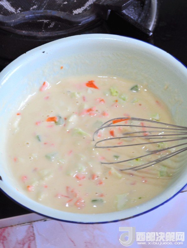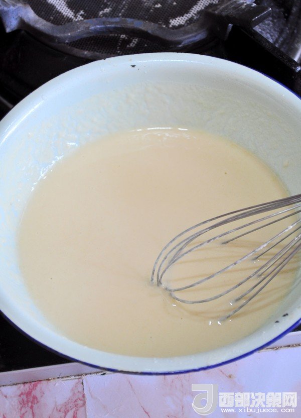 4.調(diào)成均勻的面糊,不要太稀,如酸奶般的稠度。如果口味重可以加點鹽。