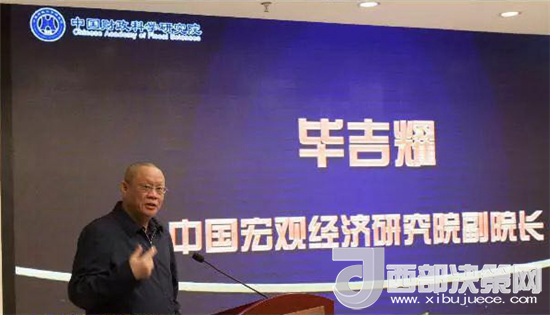 中國宏觀經(jīng)濟(jì)研究院副院長畢吉耀在研討會上發(fā)表演講。圖片來源: 財政智庫動態(tài)微信號