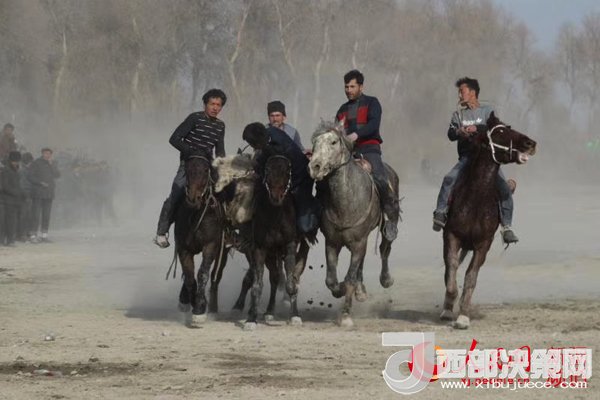 刀郎部落“與刀郎人共度春節(jié)”活動(dòng)中的賽馬叼羊比賽。