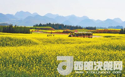 春節(jié)期間,正值云南省羅平縣100萬畝油菜花迎春盛開,吸引了國內(nèi)外大量游客紛至沓來,從初一至初五羅平縣共接待游客84.51萬人次,旅游綜合收入5.87億元。楊文明 毛 虹攝影報道
