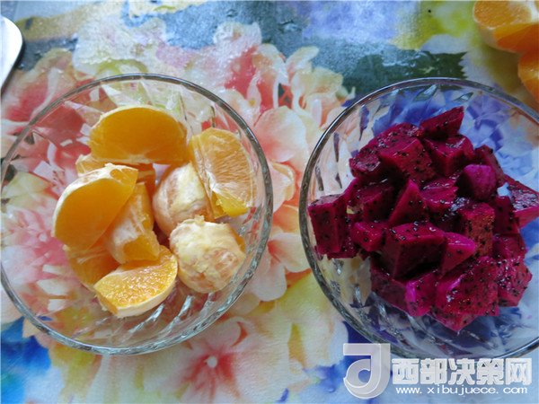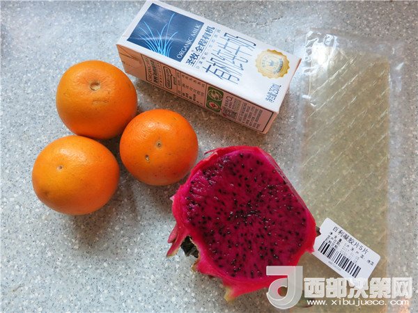 2.將火龍果,橙子去皮切塊