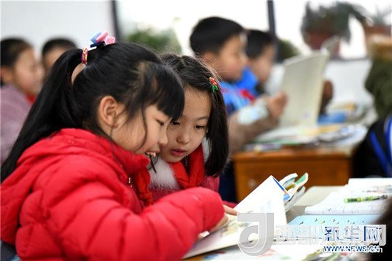 2月25日,貴州省遵義市文化小學(xué)四年級(jí)5班的學(xué)生在教室閱讀剛剛領(lǐng)到的新書(shū)。