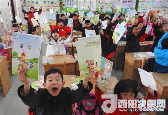 2月25日,江蘇省無(wú)錫市揚(yáng)名中心小學(xué)的學(xué)生們手捧剛剛領(lǐng)取的新課本。(湯毅 攝)