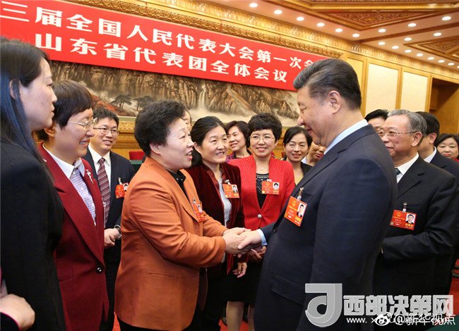 新華網(wǎng)北京3月8日電 8日上午,習(xí)近平到山東代表團參加審議。正值“三八”國際勞動婦女節(jié),習(xí)近平代表黨中央向女代表、女委員、女工作人員及全國各族各界婦女同胞,致以節(jié)日的祝賀和誠摯的祝福。