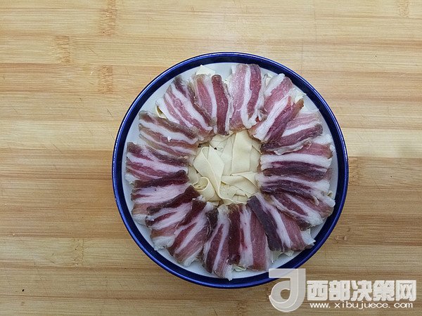 2、蒸制的時(shí)候,千張咸肉中可以加入少許水,我沒(méi)有加水,蒸出來(lái)稍稍有些干。