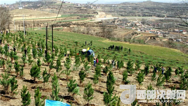 一番火熱的勞動,放眼望去:明媚的春光里,連片的樹苗錯落有致、迎風(fēng)挺立、綻放生機(jī),“阿陽大地又增添了一抹新綠”。