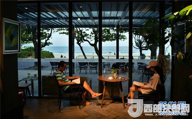 在海南省萬(wàn)寧市石梅灣,有一間面朝大海,被樹林環(huán)繞的書屋,吸引了許多游客在這里讀書。