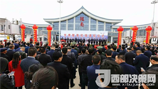 西部決策網(wǎng)——西部大開發(fā)訊(帥華鋒 通訊員 馬存福 馬智泉)2018年3月25日上午11點(diǎn)20分甘肅隴南成縣機(jī)場迎來首航!一架從重慶飛來的華夏航空龐巴迪CRJ900客機(jī)穿越云層,呼嘯著俯沖而下,平穩(wěn)降落在隴南成縣機(jī)場,這標(biāo)志著隴南成縣機(jī)場正式通航。剎那間,機(jī)場一片歡呼聲和鼓樂聲,隴南全市人民多年的飛天夢想終于實(shí)現(xiàn)了!