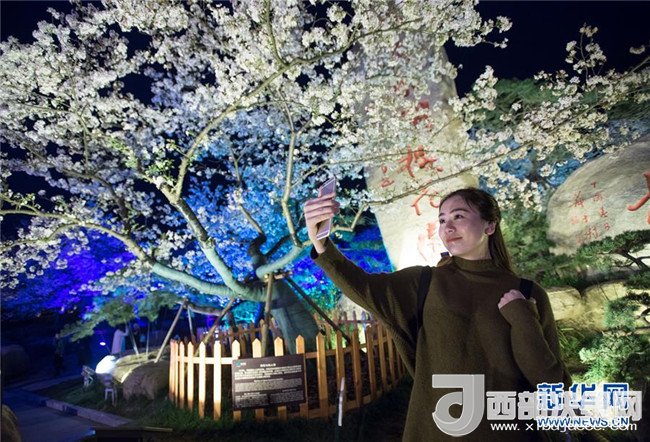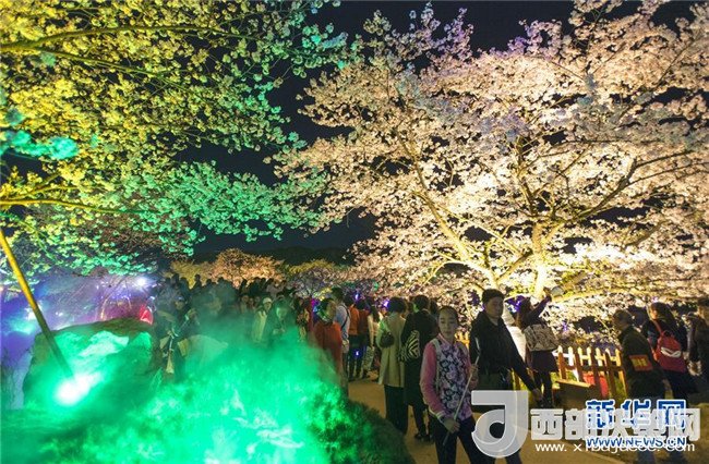近日,武漢東湖櫻花園的櫻花競相綻放。園區(qū)還在夜間開啟裝飾燈光,供游客在夜色中觀賞,吸引大量游客前來踏春賞花。 新華社記者 熊琦 攝