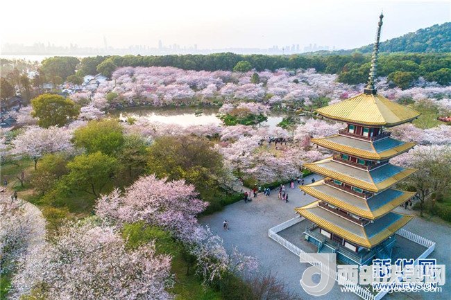 武漢:櫻花繽紛醉游人