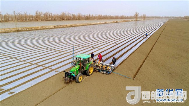 日前,位于塔里木墾區(qū)的新疆生產(chǎn)建設(shè)兵團(tuán)職工群眾開始播種棉花。據(jù)了解,塔里木墾區(qū)新疆生產(chǎn)建設(shè)兵團(tuán)計(jì)劃播種棉花300多萬(wàn)畝,4月上旬將完成全部播種任務(wù)。新華社發(fā)(杜炳勛 攝)