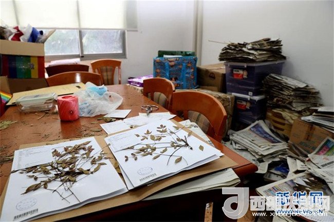 在復(fù)旦大學(xué)鐘揚的工作間里,大量報紙中夾存著他和團隊從各地采集的待整理植物標本(2018年1月24日攝)。新華社記者 劉穎 攝