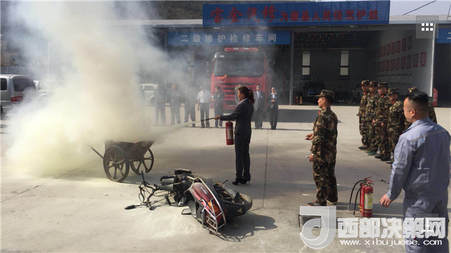 火災(zāi)設(shè)定,3月26日下午康縣大隊(duì)接到指揮中心調(diào)度稱寶金汽車專賣及修理廠發(fā)生火災(zāi),大隊(duì)立即出動2車10人趕赴現(xiàn)場進(jìn)行救援,大隊(duì)官兵到達(dá)現(xiàn)場后按演練預(yù)案展開,圓滿完成演練任務(wù)。演練結(jié)束后,大隊(duì)準(zhǔn)備了滅火器撲滅油盆火、消防裝備講解等體驗(yàn)互動活動,并不時與員工“互動",現(xiàn)場提問,有效地帶動員工學(xué)習(xí)消防知識的積極性和參與性。