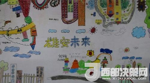 北京市朝陽區(qū)實(shí)驗(yàn)小學(xué)雄安校區(qū)學(xué)生們畫筆下的雄安。(翻拍)