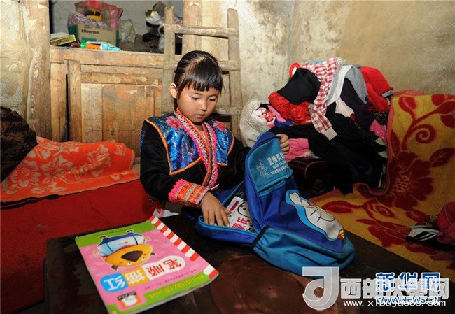 在今年的易地扶貧搬遷中,家住貴州省安順市西秀區(qū)巖臘鄉(xiāng)龍?zhí)洞甯裆趁缯?歲女孩吉雪,與家人一起從缺水、耕地少、海拔高的格沙苗寨搬遷至50公里外的西秀區(qū)工業(yè)園區(qū)易地扶貧搬遷安置點(diǎn)——彩虹社區(qū)。從4月21日夜開始,吉雪便開始忙著收拾自己的書包,準(zhǔn)備隨同爺爺、奶奶、妹妹一起離開深山苗寨。
