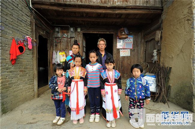 4月22日,吉雪(前右二)和家人在老房子前留影。