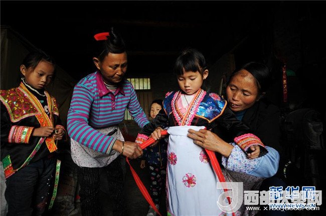 4月22日,家人在搬離老家前幫助吉雪穿新苗衣。