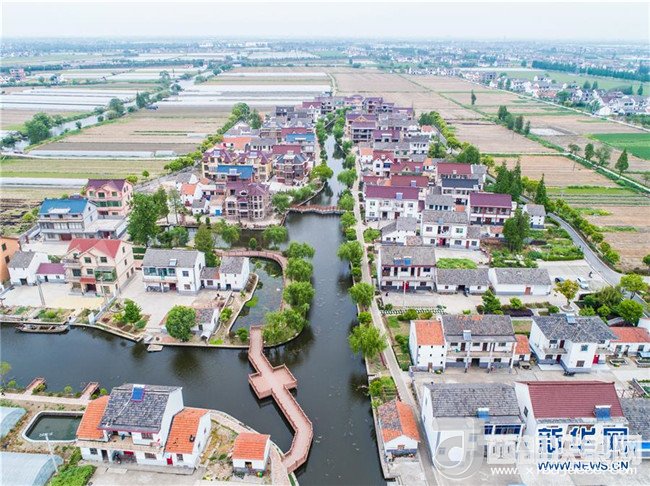4月22日,空中俯瞰浙江省長興縣虹星橋鎮(zhèn)港口村,一幢幢民房整齊地排列在一起,與寬闊的道路、美麗的環(huán)境組成了一道優(yōu)美的新農(nóng)村景象(無人機拍攝)。該村2012年被列入省級農(nóng)房改造試點村,截至2017年年底,集居人口達1800余人,新村設有農(nóng)貿(mào)市場、衛(wèi)生服務站、警務站、餐飲、超市等商業(yè)網(wǎng)點,配套設施齊備。新華社記者徐昱攝