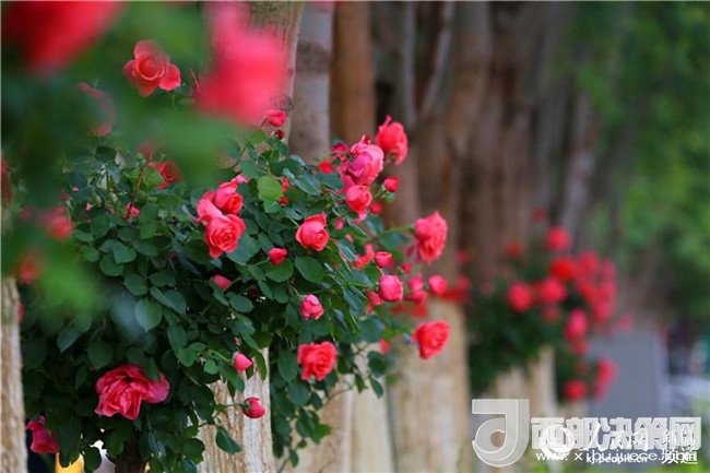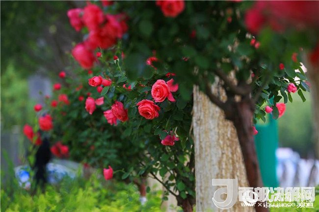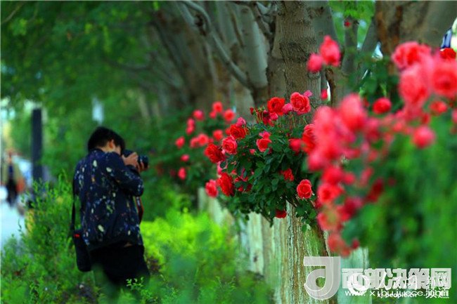 漫步在友好路兩側的人行道上,青青垂柳遮住了太陽的熾熱,垂柳上的許愿帶隨風飄蕩,五顏六色的玫瑰花光彩奪目,空氣中都是夏天的味道。這里的人們都已經換上的夏天的衣服,小孩子在老人和父母的陪伴下在這里納涼賞花,過往的路人時不時拿出手機和玫瑰花拍照留影。(李靖海、吳雙、胡國凱)