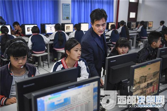 木魚中學(xué)教導(dǎo)主任張錫華(前左三)在給學(xué)生上信息技術(shù)課(4月24日攝)。