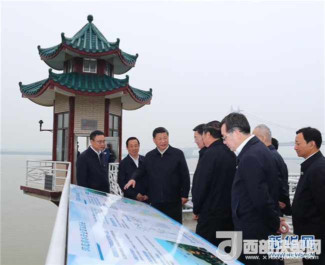 4月26日下午,中共中央總書記、國(guó)家主席、中央軍委主席習(xí)近平在武漢主持召開深入推動(dòng)長(zhǎng)江經(jīng)濟(jì)帶發(fā)展座談會(huì)并發(fā)表重要講話。這是座談會(huì)前,習(xí)近平于24日中午到興發(fā)集團(tuán)宜昌新材料產(chǎn)業(yè)園,察看化工企業(yè)搬遷、改造以及碼頭復(fù)綠情況。新華社記者 鞠鵬 攝