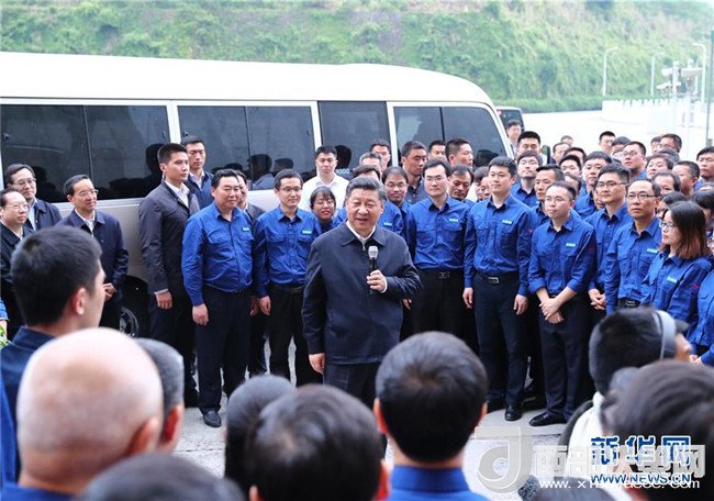 4月26日下午,中共中央總書記、國(guó)家主席、中央軍委主席習(xí)近平在武漢主持召開深入推動(dòng)長(zhǎng)江經(jīng)濟(jì)帶發(fā)展座談會(huì)并發(fā)表重要講話。這是座談會(huì)前,習(xí)近平于24日下午在三峽大壩左岸電站同技術(shù)人員、勞動(dòng)模范、工作人員代表親切交流。新華社記者 謝環(huán)馳 攝