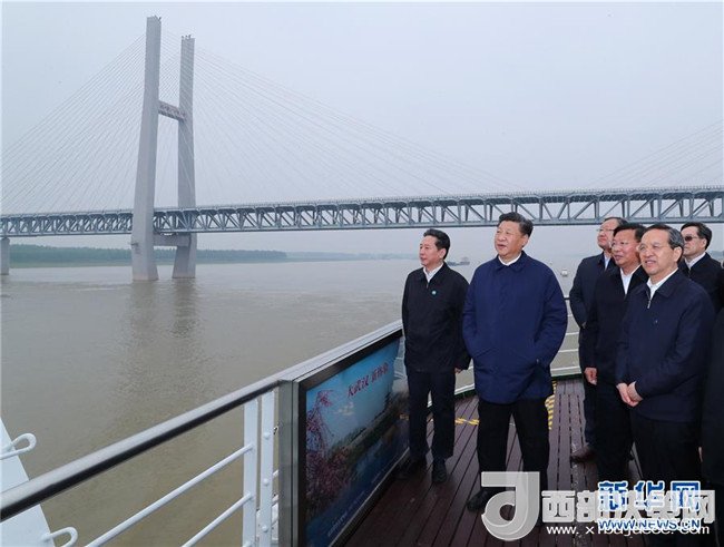 為了開好這次座談會(huì),4月24日至25日,習(xí)近平先后在湖北省委書記蔣超良、省長(zhǎng)王曉東,湖南省委書記杜家毫、省長(zhǎng)許達(dá)哲陪同下,深入湖北宜昌市和荊州市、湖南岳陽(yáng)市以及三峽壩區(qū)等地,考察化工企業(yè)搬遷、非法碼頭整治、江水污染治理、河勢(shì)控制和護(hù)岸工程、航道治理、濕地修復(fù)、水文站水文監(jiān)測(cè)工作等情況,實(shí)地了解長(zhǎng)江經(jīng)濟(jì)帶發(fā)展戰(zhàn)略實(shí)施情況。