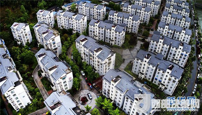 由浙江省寧波市援建的青川縣城東山小區(qū)(4月25日無人機拍攝)。汶川地震后的2009年12月,東山小區(qū)成為當地第一個建成的安置小區(qū),首批408戶災民搬進了新居。新華社記者陶明攝
