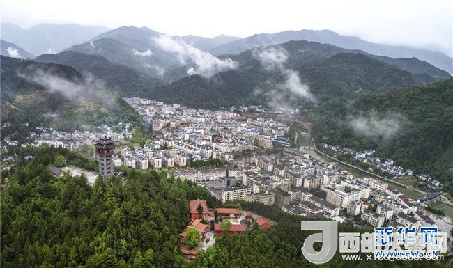 新青川縣城(4月25日無人機拍攝)。新華社記者陶明攝