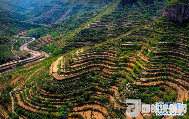 這是5月6日無人機拍攝的涉縣關防鄉(xiāng)后池村梯田和公路。