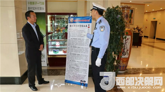 西部決策網(wǎng)——西部大開發(fā)訊(帥華鋒 通訊員 馬存福 漆小燕)酒后駕車害人深,酒前宣傳可預(yù)防。為進(jìn)一步倡導(dǎo)文明、安全行車,培養(yǎng)駕駛?cè)肆己玫鸟{駛習(xí)慣,最大限度的預(yù)防和減少酒后駕駛交通違法行為,營(yíng)造“拒絕酒后駕駛”濃厚的宣傳氛圍。近日,甘肅天水公安交警部門結(jié)合全省正在開展的“三反一查”綜合治理以及“七個(gè)一律”工作安排,在轄區(qū)酒店、賓館投放“拒絕酒駕”宣傳立式海報(bào)、溫馨提示卡,將酒駕的危害、法律法規(guī)宣傳前移到了就餐前,讓市民在餐桌上筑起一道法律安全防線。