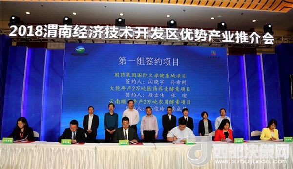 省質(zhì)監(jiān)局質(zhì)量監(jiān)督處處長(zhǎng)張泉生,市食藥局黨組書記、局長(zhǎng)王建軍,市商務(wù)局副局長(zhǎng)李爭(zhēng)良、市工信局副局長(zhǎng)孟宗憲,市外經(jīng)局副局長(zhǎng)郭向陽、市質(zhì)監(jiān)局總工程師井西娥等省市領(lǐng)導(dǎo)出席推介會(huì)并見簽。經(jīng)開區(qū)黨群工作部部長(zhǎng)閆曉宇,管委會(huì)副主任段宏偉、馬俊玲上臺(tái)簽約。此次簽約的項(xiàng)目包括有總投資30億元的國(guó)藥健康文旅城項(xiàng)目,總投資1億元的大能年產(chǎn)2萬噸醫(yī)藥蕎麥酵素項(xiàng)目,總投資3億元的陜西順天年2萬噸農(nóng)用酵素項(xiàng)目;總投資1.2億元的年產(chǎn)1萬噸功能性酵素和酵素飲品項(xiàng)目、總投資8000萬元的陜西宜康神年產(chǎn)5000噸蘆薈酵素項(xiàng)目和總投資6000萬元的陜西弘康生物科技股份有限公司特色植物提取項(xiàng)目;總投資8000萬元的綠盛農(nóng)業(yè)科技有限責(zé)任公司農(nóng)用酵素運(yùn)營(yíng)示范中心項(xiàng)目、總投資5400萬元的信德緣復(fù)合果蔬酵素項(xiàng)目和總投資6000萬元的渭南市藥材公司年產(chǎn)1000噸葡萄酵素項(xiàng)目。