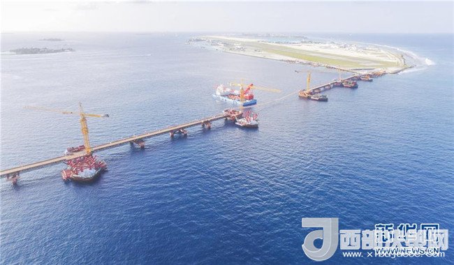 這是2017年7月6日俯拍的馬爾代夫中馬友誼大橋建設(shè)現(xiàn)場。中馬友誼大橋于2016年初正式動(dòng)工,是中馬共建“一帶一路”的重要合作項(xiàng)目。作為馬爾代夫有史以來第一座大橋,同時(shí)也是印度洋上第一座跨海大橋,中馬友誼大橋連通馬爾代夫首都馬累和機(jī)場島,由橋梁、填海路堤及道路等組成,使用壽命100年。新華社發(fā)