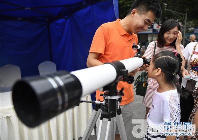 5月20日,一名小朋友在中科院成都分院活動(dòng)現(xiàn)場(chǎng)體驗(yàn)望遠(yuǎn)鏡。