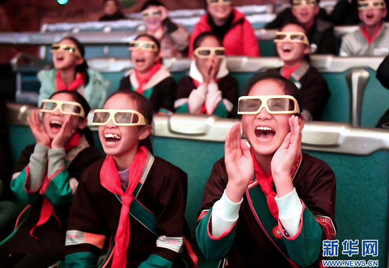 在廣西柳州市景行小學(xué)柳東校區(qū),來(lái)自三江侗族自治縣和融安縣大山里的留守兒童觀看3D動(dòng)畫片(1月4日攝)。當(dāng)日,柳州市舉行關(guān)愛留守兒童城市圓夢(mèng)活動(dòng)。新華社發(fā)(黎寒池 攝)
