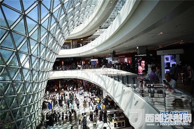 顧客在海南三亞海棠灣免稅店內游覽、購物(2月18日攝)。