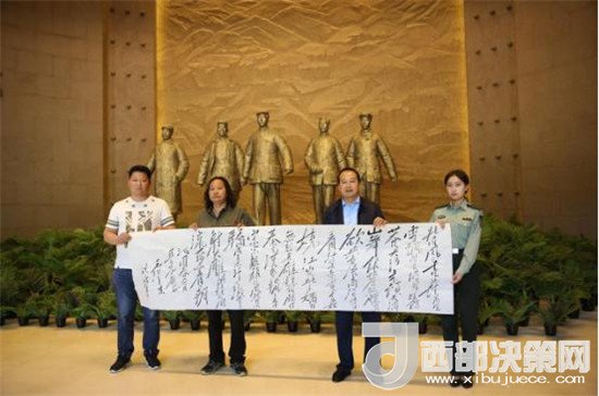 西部決策網—西部大開發(fā)訊(帥華鋒 通訊員 陳彥榮 齊彩云)在這綠意盎然、鳥語花香的美好時節(jié),“紅色南梁”迎來了中國“毛體”書法家協會會員、中國硬筆書法協會會員、中國書畫家協會會員、金陵書畫院理事、江西廬山毛主席書法研究院高級研究員、中國毛澤東詩詞研究會會員、韶山毛澤東書法藝術研究會會員王洪濤老師,他帶著對華池革命老區(qū)的深情厚誼和對劉志丹、謝子長、習仲勛等陜甘邊革命先輩舍生忘死、救民出水火的崇敬之意,長途跋涉一路輾轉,向南梁革命紀念館捐贈毛主席詩詞書法作品。
