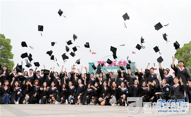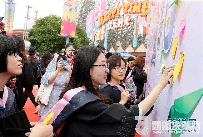 6月10日,畢業(yè)生們在歡樂谷廣場上拍合影。新華社記者 方喆攝